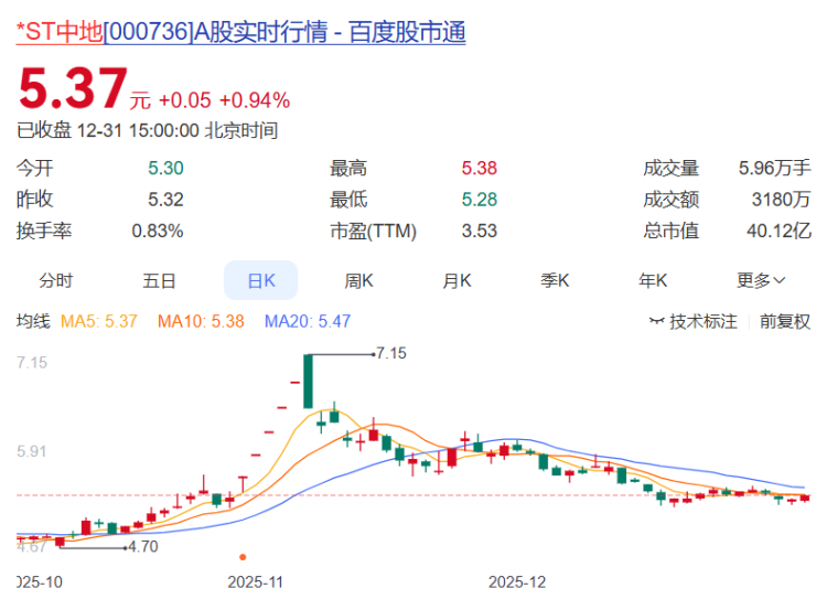 *ST中地以-37.56%年涨幅居后