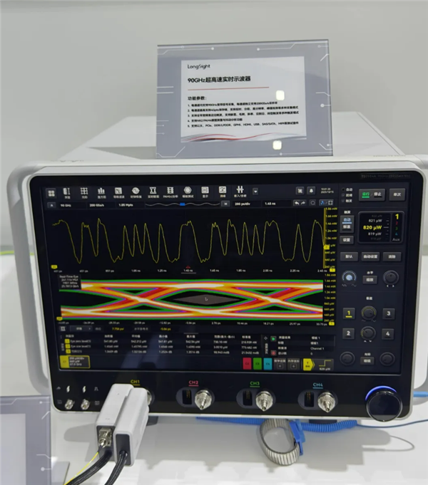 国际领先水平的高端示波器带宽达到60GHz以上,最高可达110GHz,此前国内厂商的示波器最高带宽则在8GHz~18GHz之间。